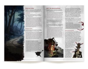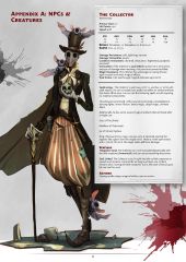The party encounter a large colorful tent on wheels with a big wooden sign of carved letters spelling Travelling Cabinet of Curiosities. A tall slender hooded showman offers a tour of his collection and the legendary secrets behind them. As the party accept the offer and enter the curtains, they see a large space filled with eerie items ranging from monstrous body parts to magical artifacts all being displayed on wooden shelves or pedestals. In their tour, an odd-looking large rat escapes and bites one of the players, infecting them with a rare wererat curse as it flees. Tomorrow’s sunset the full-moon rises and the infected character will permanently turn into a monstrous rat. Fortunately, the Collector has the ability to lift the curse but the